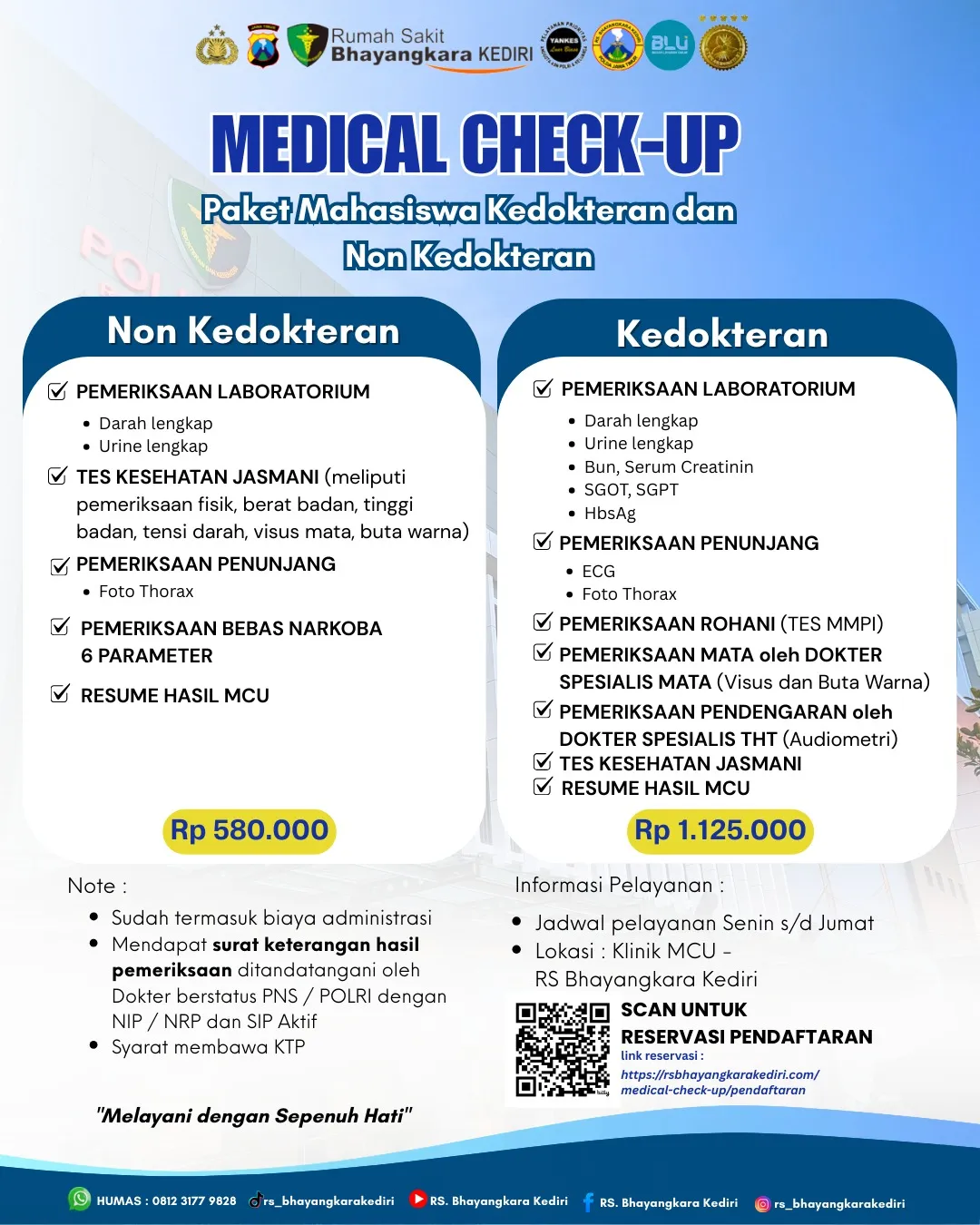 RS Bhayangkara Kediri menyediakan paket khusus mahasiswa dengan harga terjangkau: